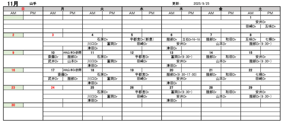 2025年11月の外来担当医が決定しましたのでお知らせ致します。