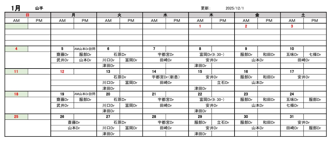 2026年1月の外来担当医が決定しましたのでお知らせ致します。