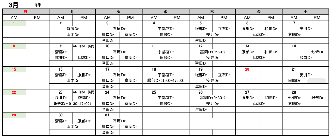 2026年3月の外来担当医が決定しましたのでお知らせ致します。
